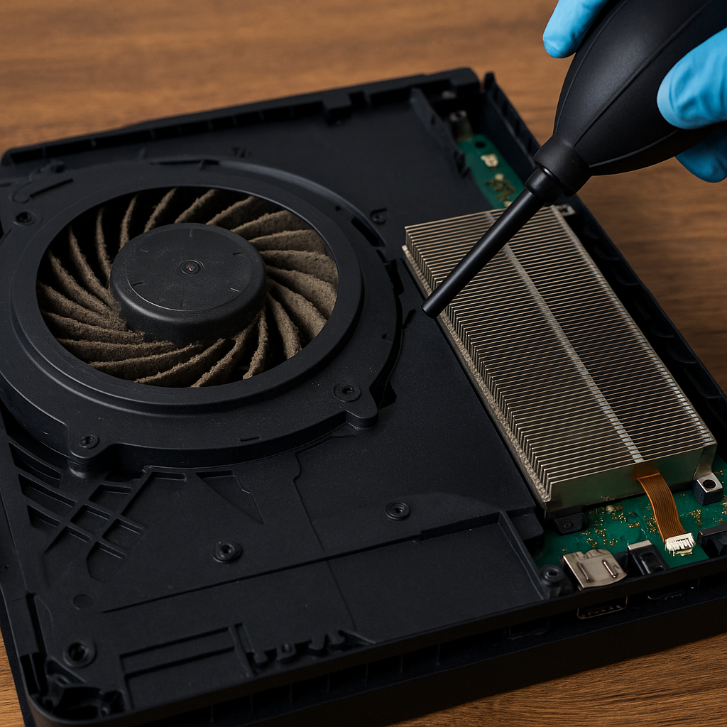 Każda konsola ma wewnątrz wentylator, radiatory oraz system odprowadzania ciepła. Podczas długiej pracy gromadzi się w nim kurz, pył, a czasem nawet sierść zwierząt, które blokują swobodny przepływ powietrza. W efekcie: