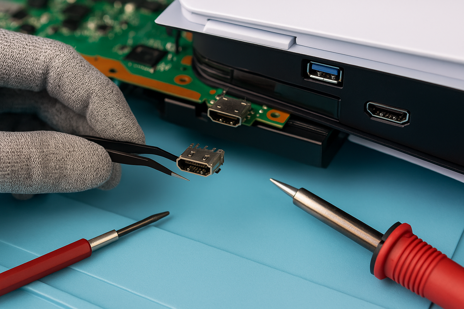 Wymiana portu HDMI to precyzyjna praca wymagająca profesjonalnego sprzętu, mikroskopu i stacji lutowniczej. Próby samodzielnej naprawy mogą doprowadzić do uszkodzenia płyty głównej i znacznie podwyższyć koszt całej usługi.