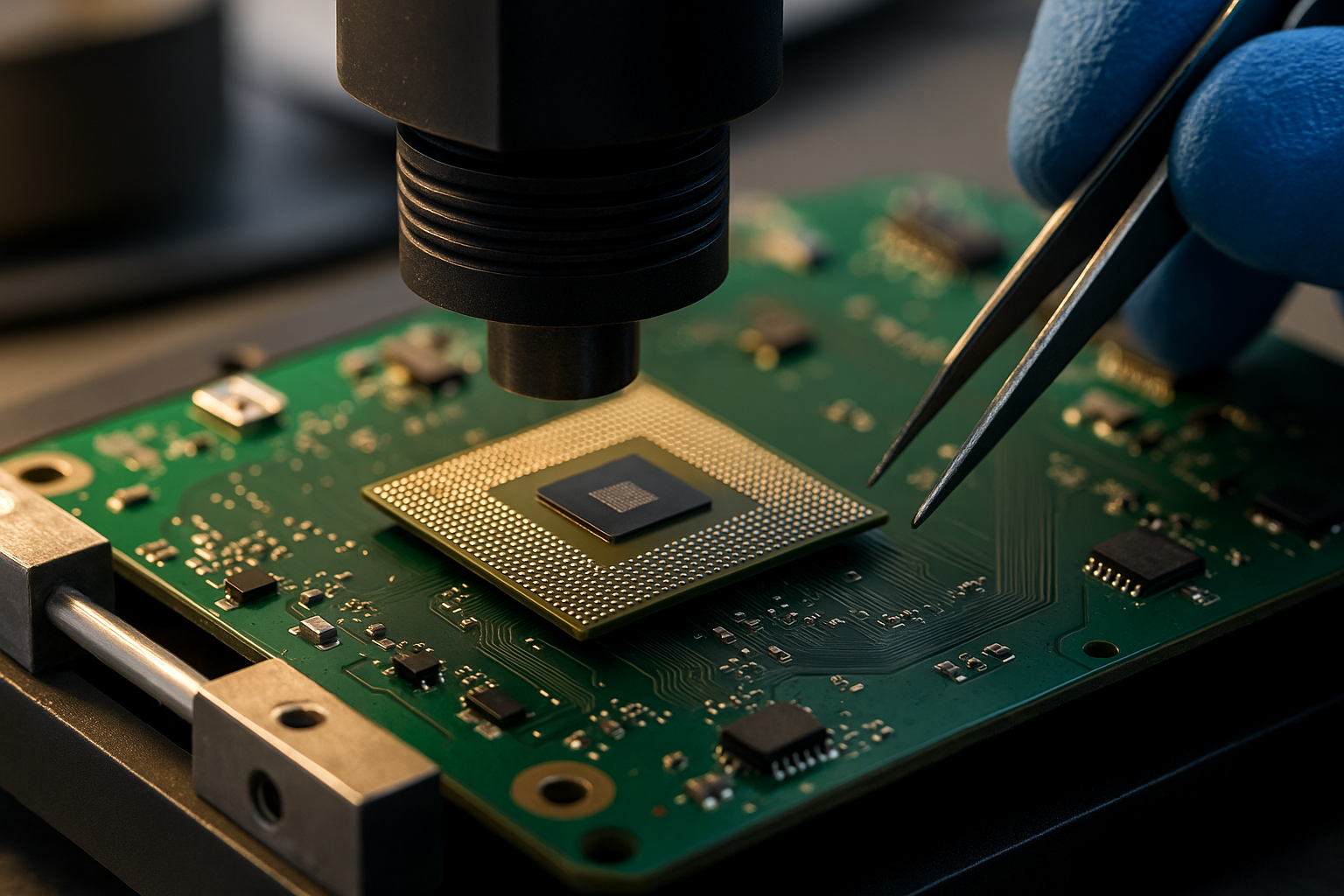 - Reballing – nałożenie nowych kulek lutowniczych na stary układ i ponowny montaż.